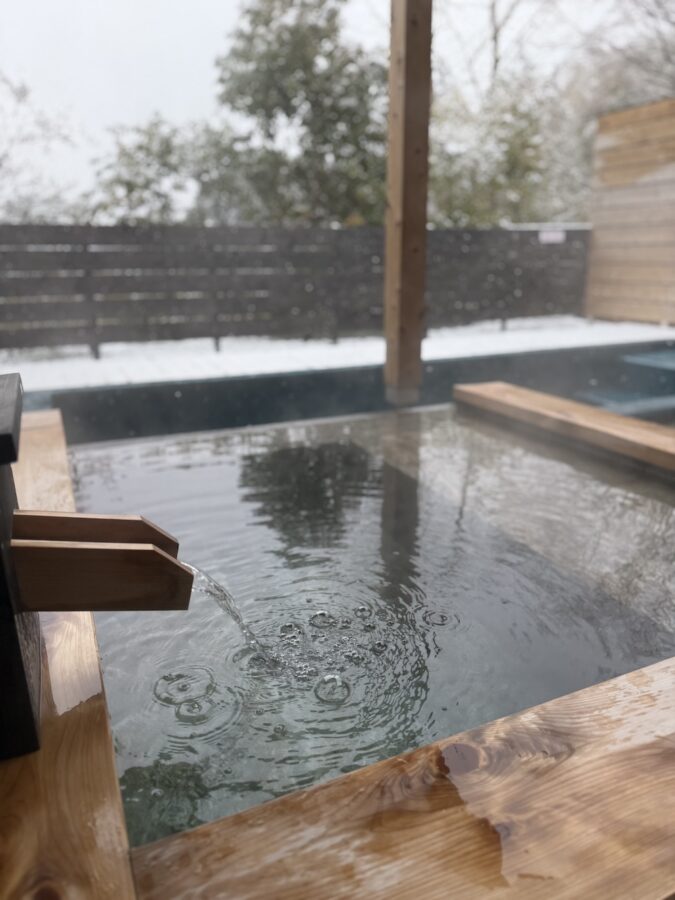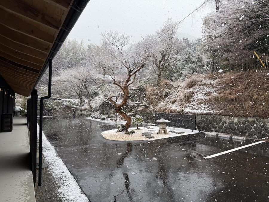 日中は激しく降り続いた雪も夕方には落ち着き、Izumi An 泉庵は初めての雪化粧をまといました。